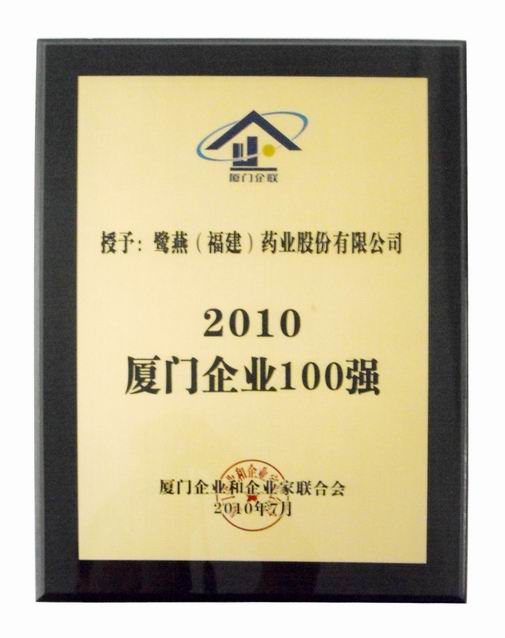 2010年6月28日,“2010廈門企業(yè)100強(qiáng)”榜單正式出爐,鷺燕(福建)集團(tuán)依托穩(wěn)健經(jīng)營,實現(xiàn)經(jīng)營業(yè)績穩(wěn)步發(fā)展,位列榜單第37位,同比去年排名前進(jìn)12位。自2006年參加廈門企業(yè)百強(qiáng)評選以來,鷺燕集團(tuán)已連續(xù)5年位列百強(qiáng)企業(yè)榜單。